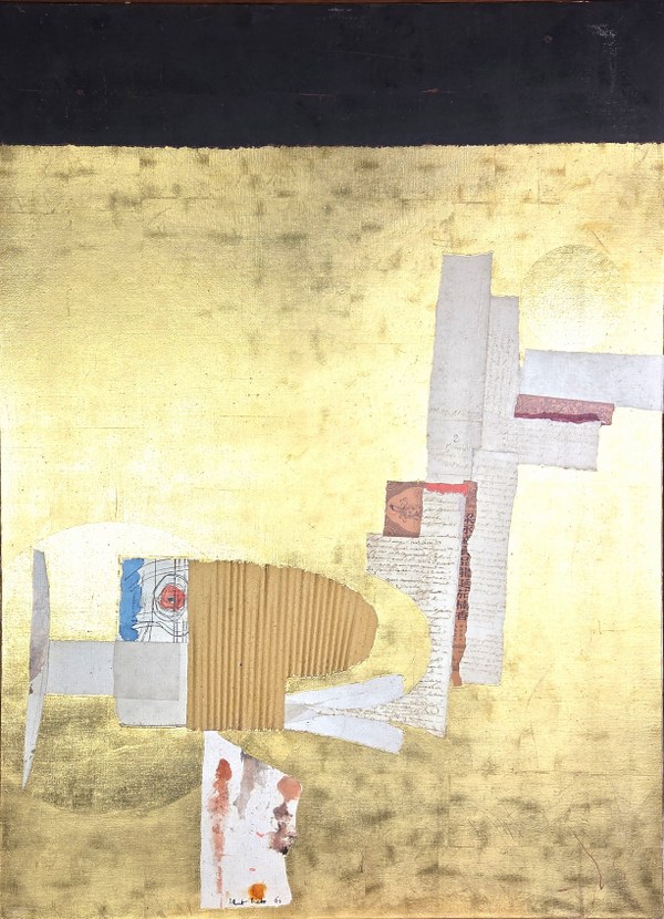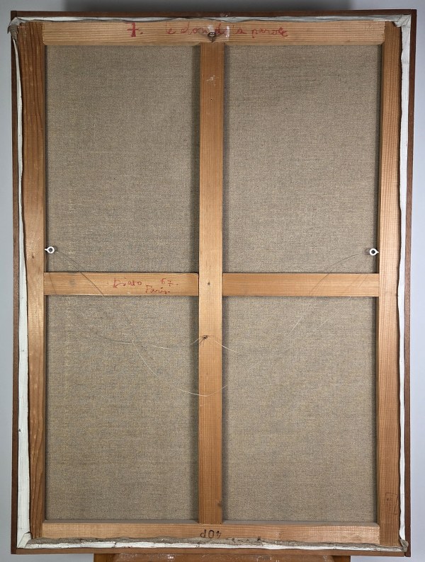 Albert DIATO (1927-2013). Le don de la parole. Technique mixte sur toile. Signée en bas à gauche et daté 67 & contresignée, titrée, datée et située Paris au dos. 100 x 73 cm.