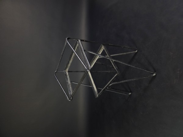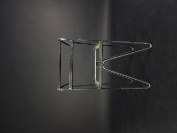 Meuble d'appoint à double plateaux. Structure ondulée en métal tubulaire noirci. Travail 1950. 73 x 38 x 30 cm. Manque les deux plateaux.