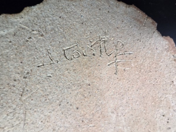Jacky COVILLE (né en 1936). Miroir "soleil" en grès brun émaillé à incrustations de pastilles en miroirs teintés. Signé. Vers 1970. Diamètre : 25 cm.