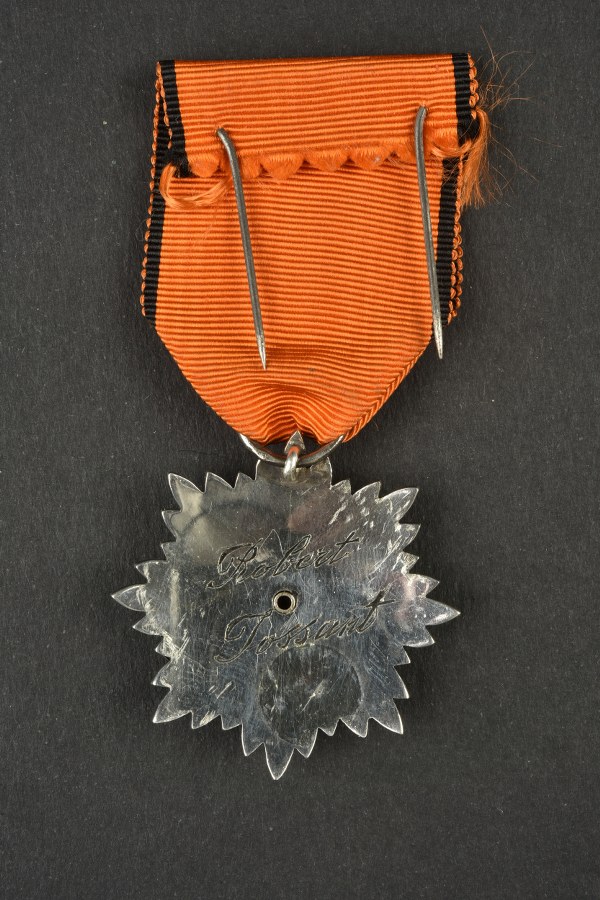 Médaille du Mérite Cinématographique. Peu courante médaille, attribuée à Robert Jossant. On retrouve ce nom comme directeur du Royal Ciné de Bourges en 1945. Avec son ruban. Bon état I-