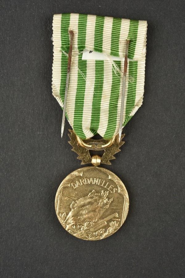 Médaille commémorative des Dardanelles. Belle dorure, avec son ruban I-