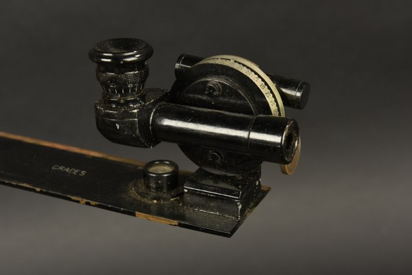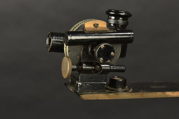 Ensemble de topographe. Comprenant le goniomètre boussole modèle 1916 portant les marquages Gaumont R35. Règle éclimètre à rallonge modèle 1931 bien marquée Ministère de la Guerre ,dans son étui de transport en bois d'origine portant la plaque du fabricant Huet. On y joint un trépied de télémètre modèle 1912,complet . Etat II+