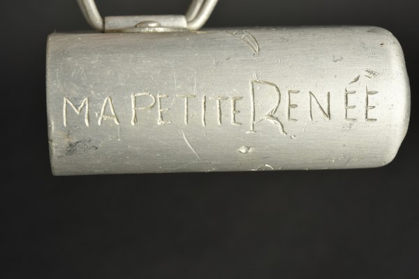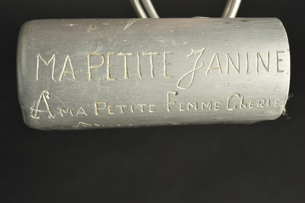 Ensemble de quarts gravés 1935. Comprenant cinq quarts gravés modèle 1935 dont un du155ème RIF On ne passe pas avec un soldat fumant une cigarette, un du 306ème RI 1939-1940 avec des décors de vigne et de fleurs, un gravé d'une voiture et d'un fer à cheval et un autre difficileent lisible. Etat II+