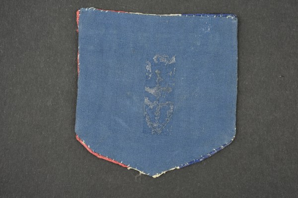 Insigne tissu résistance marqué SPITFIRE. En tissu de soie aux couleurs nationales, doublé à l'arrière d'un tissu bleu . Le mot Spitfire en points chaînette rouge et bleu, et brodés le V de la victoire et croix de Lorraine. Attribution possible au réseau d'évasion Shelburn. Bon état, légère usure II+