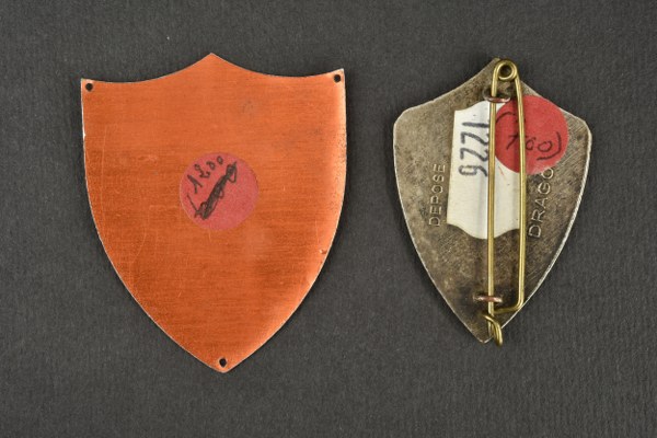 Lot d'insignes Maquis du 80ème RI. Comprenant un insigne en métal émaillé du maquis du 80ème régiment d'infanterie, fabrication Drago déposé. Un insigne en fin métal anodisé marqué Maquis 80ème RI, trois trous de couture. Etat II+