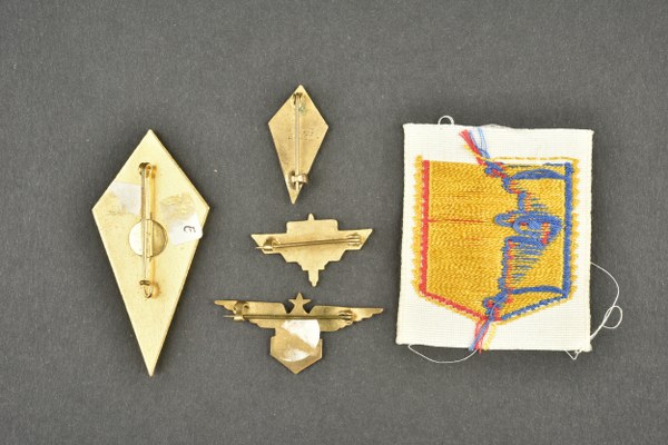 Lot d'insignes FFL FAFL. Comprenant un perchoir de 65 mm non marqué, une réduction marquée Reg. N°83830, une réduction d'insigne FAFL non marquée, un insigne France Libre non marqué et un insigne brodé France Libre II