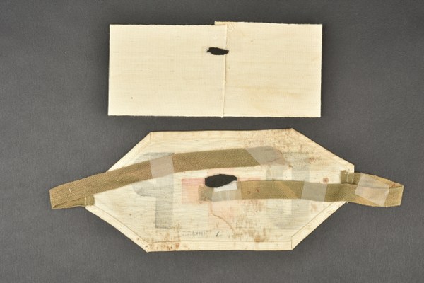 Brassards français. Comprenant un brassard en tissu coton blanc, marquage imprimé DP avec une croix rouge. Numéro 000455, tampon allemand illisible. Attache complète. Un brassard en tissu coton blanc, marquages Equipes D'urgences Croix route Française. A noter une certaine usure et patine des pièces, ainsi que des tâches. Etat II+. 2+