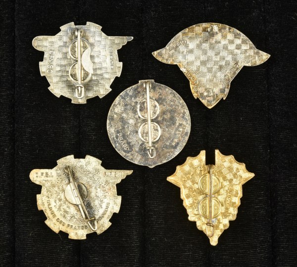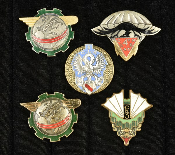 Lot de 5 insignes Livraison par Air. Insignes des Compagnies ou Groupements N°1,2 et 3 et N° 4 des Troupes de Marine. Bon état II+