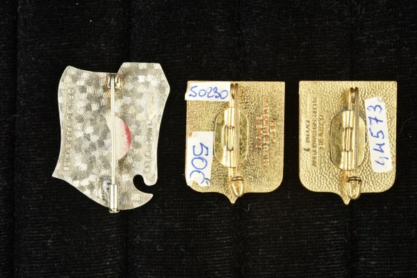 Lot de 3 insignes Escadrilles de Liaisons aériennes. 52e ELA 1er type ciel rouge, et 2e type ciel bleu, tous deux fabrication Augis avec leurs attaches. Et 53e ELA modèle en argent Drago rue Olivier Metra. Bon état I-