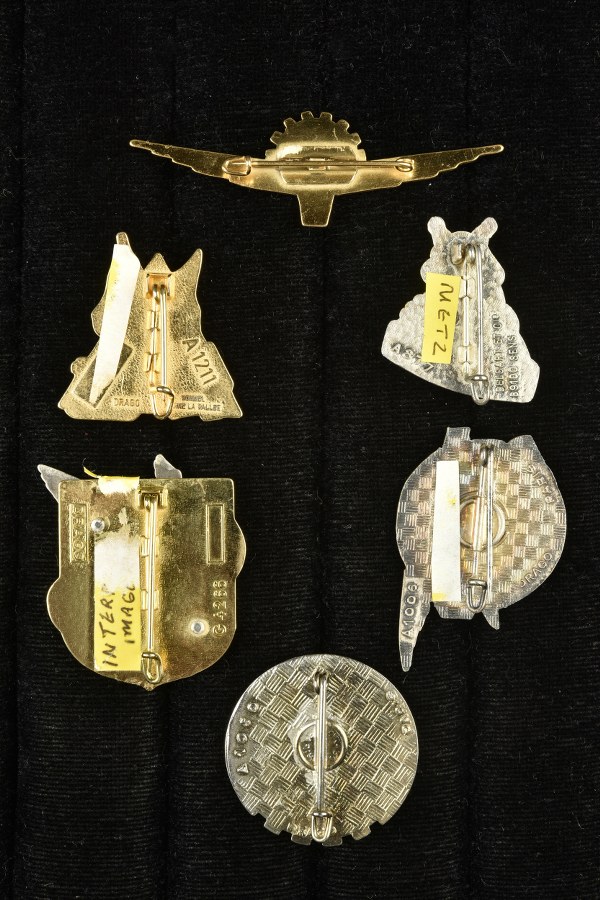Lot de 5 insignes photographie Air et interprétation. Centre d'interpretation photo, Escadron 04/317, Escadron Photo et Reconnaissance, Centre d'exploitation photo, Centre de formation et interprétation imagerie. On y joint un insigne ou brevet de photographe air à identifier. Tous en bon état avec leurs attaches II+