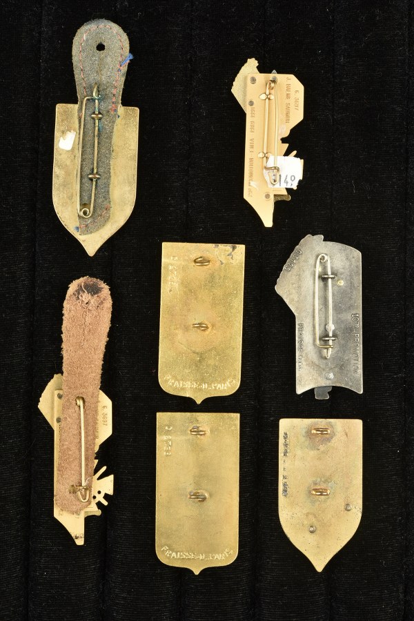 Lot de 7 insignes de promotions relatifs au Bataillon de Corée. Comprenant 2 insignes EOR Ecole d'Applic, ation de l'ABC 201 Bataillon de Corée, 2 insignes EOR Coëtquidan, 2 insignes EMIA 1989-1991 et un insigne ENSOA promotion 107. avec leurs attaches II+
