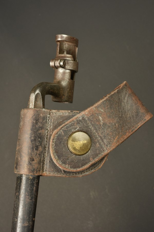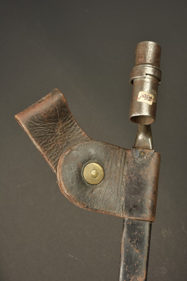 Baïonnette à douille Remington Rolling Block. Baïonnette à douille, lame triangulaire, longueur totale 52,2 cm. Douille marquée de la lettre H. D'après l'ABC, baïonnette pour la milice de l'état de NewYork. Avec son fourreau. Bon état II+