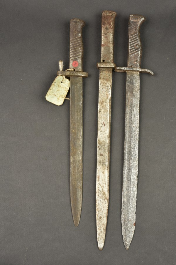 Lot de 3 baïonnettes ersatz. 3 modèles différents dont ersatz Bavaroise, toutes en mauvais état, sans fourreau III+