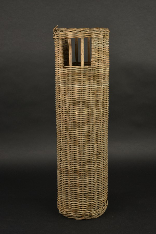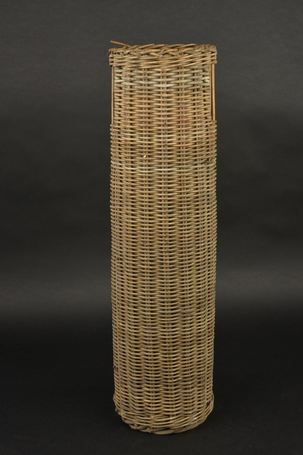 Panier en osier pour obus allemand. En osier tressé, hauteur 66 cm, diamètre intérieur 15 à 16 cm. Bon état II