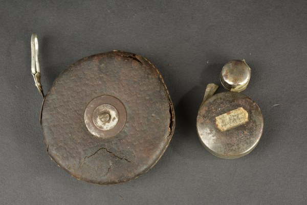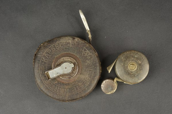 Mètres allemand. Comprenant un grand modèle de mètre, fortement abîmé, lame oxydée. Fabrication Beste Martle der Kapseln, 20 mètres. Un mètre petit modèle incomplet. A noter une certaine usure et patine des pièces. Etat II+. 2+