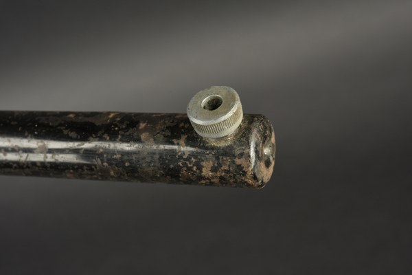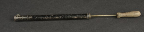 Pompe à vélo allemande. En métal, couleur noir à 70%. Poignée en bois. Fonctionnelle. Sans marquages visibles. A noter une certaine usure et patine de la pièce. Etat II+. 2+