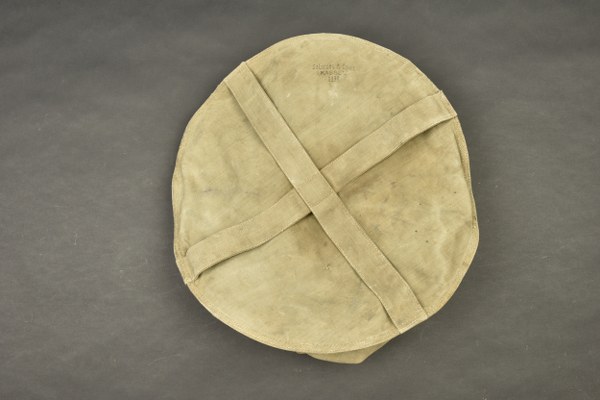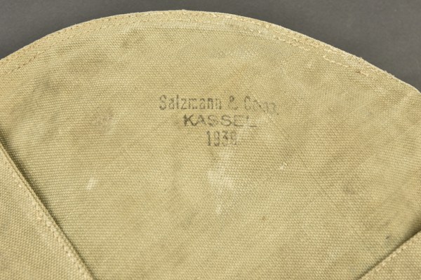 Vache à eau allemande. En épaisse toile Feldgrau. Les poignées de transport sont en bois. Fabrication Salzmann Kassel 1938. A noter une certaine usure et patine de la pièce, ainsi que quelques tâches et accrocs. Etat II+. 2+