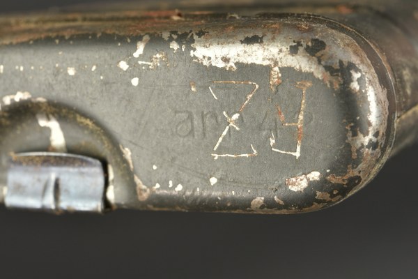 RG34. En métal, peinture Feldgrau à 80%. Fabrication ARR 42. Tous les accessoires sont présents, sauf la cuillère. A noter une certaine usure et patine de la pièce. Etat II+. 2+