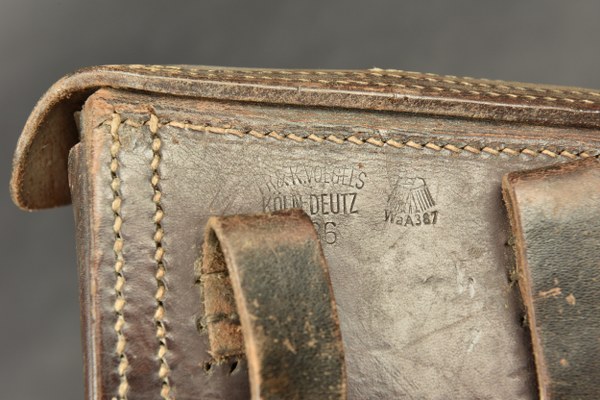 Holster pistolet P08. En cuir marron, toutes les sangles sont présentes, ainsi que les passants arrières. Clé de démontage manquante. Fabrication Köln 1935. Bel aigle du Reichsamt. A noter une certaine usure et patine de la pièce. Etat II+. 2+