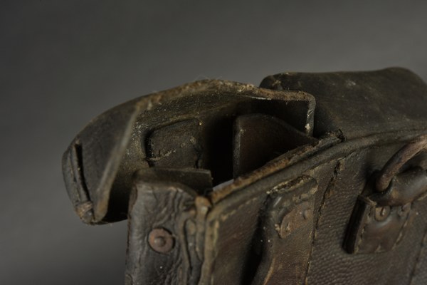 Cartouchières de Mauser 98K. Comprenant une cartouchière en cuir grenelé noir, toutes les sangles sont présentes, les marquages sont illisibles, certains rivets sont manquants. Une cartouchière de Mauser 98K, en cuir grenelé noir, fortement abîmé, reste d'un marquage d'unité 2 PI 21 II. Une cartouchière de Mauser 98K, toutes les sangles sont présentes, marquages illisibles. A noter une certaine usure et patine des pièces. Etat II+. 2+