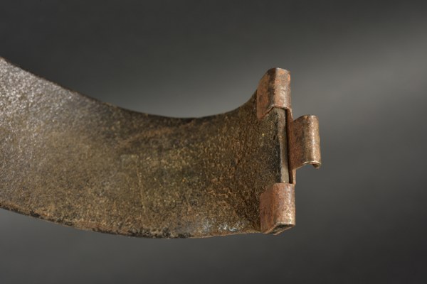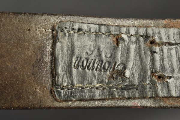 Cuir de ceinturon allemand. En cuir noir, patte de réglage complète. Bouclerie en métal fortement oxydé. Marquages Croupon 256. A noter une certaine usure et patine de la pièce. Etat II+. 2+