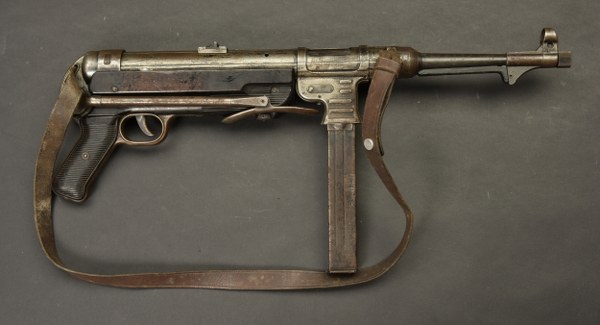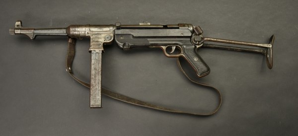 Pistolet mitrailleur MP 40. Les parties métalliques sont quasiment dépourvues de bronzage. Chargeur bloqué par la neutralisation. Culasse mobile grâce à la neutralisation +. Plaquettes en bakélite. Bâti également en bakélite. Bretelle en cuir complète. Fabrication MP 40 BNZ 42, numéro 2151D. Steyr Daimler Puch. Crosse pliante fonctionnelle. Catégorie C9. Arme neutralisée aux nouvelles normes européenne par le Banc d'épreuve de Saint Etienne. Cette arme doit être déclarée avec Cerfa et certificat médical de moins de 1 mois ou licence de tir tamponnée ou permis de chasse valide (art R312-56). La délivrance de l'arme n'aura lieu qu'après consultation du fichier Finadia. L'inscription de l'acheteur sur ce fichier entrainera automatiquement la nullité de la vente. A noter une certaine usure et patine de la pièce. Etat II+. 2+