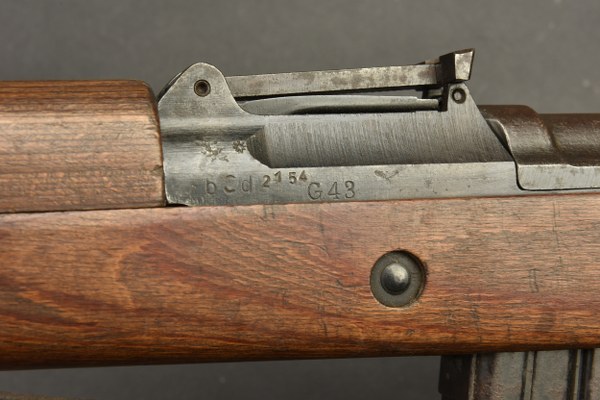 Fusil semi automatique G43. Fabrication BCD G43, numéro 2154. L'arme n'est pas au même numéro. Protège guidon complet. Baguette de nettoyage complète. Les parties métalliques sont en très bon état. Chargeur complet, soudé à l'arme, bien marqué G43. Bretelle en cuir complète. Beaux aigles Waa au niveau de la crosse. Culasse mobile grâce à une neutralisation +. Bretelle en cuir complète. Catégorie C9. Arme neutralisée aux nouvelles normes européenne par le Banc d'épreuve de Saint Etienne. Cette arme doit être déclarée avec Cerfa et certificat médical de moins de 1 mois ou licence de tir tamponnée ou permis de chasse valide (art R312-56). La délivrance de l'arme n'aura lieu qu'après consultation du fichier Finadia. L'inscription de l'acheteur sur ce fichier entrainera automatiquement la nullité de la vente. A noter une certaine usure et patine de la pièce. Etat II+. 2+