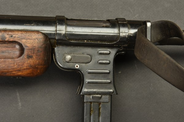 Pistolet mitrailleur MP41. Les garnitures sont dans leur bronzage d'origine à 80%. Belle crosse en bois. Chargeur bloqué par la neutralisation. Culasse rendue mobile par une neutralisation +. Bretelle en cuir complète. Fabrication Haenel MP 41. Numéro 13861. Catégorie C9. Arme neutralisée aux nouvelles normes européenne par le Banc d'épreuve de Saint Etienne. Cette arme doit être déclarée avec Cerfa et certificat médical de moins de 1 mois ou licence de tir tamponnée ou permis de chasse valide (art R312-56). La délivrance de l'arme n'aura lieu qu'après consultation du fichier Finadia. L'inscription de l'acheteur sur ce fichier entrainera automatiquement la nullité de la vente. A noter une certaine usure et patine de la pièce. Etat II+. 2+