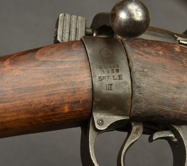 Fusil Lee Enfield. Les garnitures métalliques présentes des traces d'oxydation. Fabrication Birmingham Small Arm Co, N1 MK III, numéro BNE 794. Belle crosse en bois complète. Culasse rendu mobile grâce à une neutralisation +. Une goupille est manquante au niveau des attaches de bretelle. Catégorie C9. Arme neutralisée aux nouvelles normes européenne par le Banc d'épreuve de Saint Etienne. Cette arme doit être déclarée avec Cerfa et certificat médical de moins de 1 mois ou licence de tir tamponnée ou permis de chasse valide (art R312-56). La délivrance de l'arme n'aura lieu qu'après consultation du fichier Finadia. L'inscription de l'acheteur sur ce fichier entrainera automatiquement la nullité de la vente. A noter une certaine usure et patine de la pièce. Etat II+. 2+