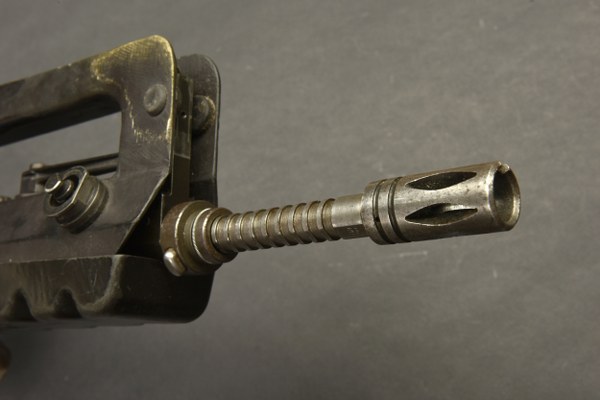 Fusil d'assaut FAMAS F1. En métal et matière plastique. Quelques traces d'oxydation. Chargeur bloqué par la neutralisation. Culasse rendue mobile par la neutralisation +. Fabrication de la Manufacture d'armes de Saint-Etienne. Numéro A41355. Une partie du bipied est absente. Catégorie C9. Arme neutralisée aux nouvelles normes européenne par le Banc d'épreuve de Saint Etienne. Cette arme doit être déclarée avec Cerfa et certificat médical de moins de 1 mois ou licence de tir tamponnée ou permis de chasse valide (art R312-56). La délivrance de l'arme n'aura lieu qu'après consultation du fichier Finadia. L'inscription de l'acheteur sur ce fichier entrainera automatiquement la nullité de la vente. A noter une certaine usure et patine de la pièce. Etat II+. Commandé et mis en service dans les années 1970 par l'armée française. 2+