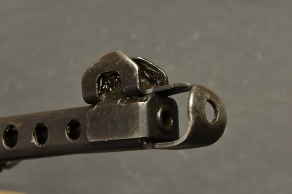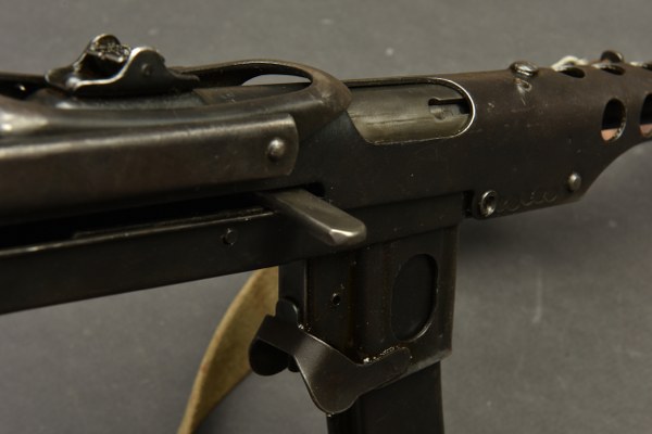Pistolet mitrailleur PPS 43. Tout en métal, quelques petites traces d'oxydation visibles. Plaquettes en bakélite noire. Crosse pliante complète. Bretelle en toile présente. Culasse mobile grâce à une neutralisation +. Numéro B121, datée 1943. Chargeur bloqué par la neutralisation. Catégorie C9. Arme neutralisée aux nouvelles normes européenne par le Banc d'épreuve de Saint Etienne. Cette arme doit être déclarée avec Cerfa et certificat médical de moins de 1 mois ou licence de tir tamponnée ou permis de chasse valide (art R312-56). La délivrance de l'arme n'aura lieu qu'après consultation du fichier Finadia. L'inscription de l'acheteur sur ce fichier entrainera automatiquement la nullité de la vente. A noter une certaine usure et patine de la pièce. Etat II+. Le pistolet-mitrailleur Soudaïev (ou Sudaev) PPS soviétique est un pistolet-mitrailleur conçu sous forme d'un modèle (PPS 42) par Alekseï Soudaïev pendant le siège de Léningrad en 1942. Il était destiné originellement aux tankistes et aux éclaireurs. En supprimant les plaquettes en bois du PPS-42, et en simplifiant la fabrication, Soudaïev crée le PPS-43 qui sera produit jusqu'en 1945 en Union soviétique. C'est un modèle rustique fabriqué en tôle emboutie avec des pièces soudées ou rivetées. 2+