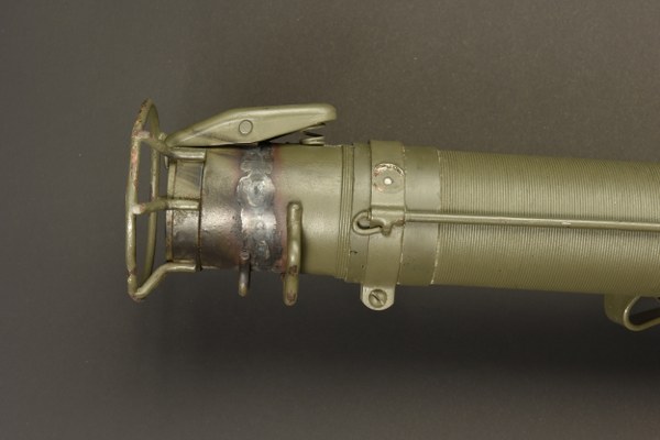 Bazooka US M9A1. En métal. Peinture kaki postérieure. Modèle normalement démontable mais scellé par la neutralisation. Poignée en bakélite noire. Epaulière en métal. Numéro 234303. Catégorie C9. Arme neutralisée aux nouvelles normes européenne par le Banc d'épreuve de Saint Etienne. Cette arme doit être déclarée avec Cerfa et certificat médical de moins de 1 mois ou licence de tir tamponnée ou permis de chasse valide (art R312-56). La délivrance de l'arme n'aura lieu qu'après consultation du fichier Finadia. L'inscription de l'acheteur sur ce fichier entrainera automatiquement la nullité de la vente. A noter une certaine usure et patine de la pièce. Etat II+. 2+
