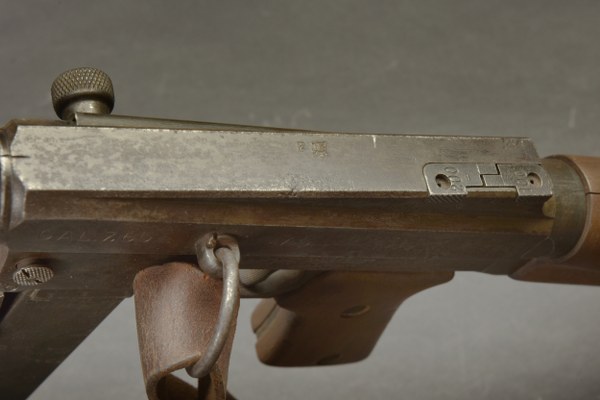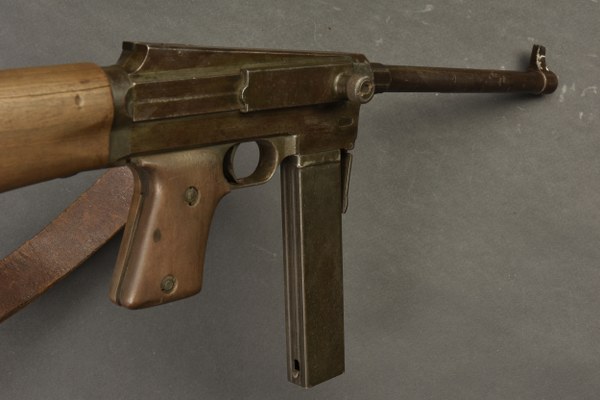 Pistolet mitrailleur MAS 38. Les garnitures métalliques sont partiellement oxydées. Marquages de la Manufacture d'armes de Saint-Etienne. Numéro F33631. Chargeur et culasse bloqués par la neutralisation. Crosse fendue portant le numéro F33631. Plaquettes de poignée en bois. Bretelle en cuir. Catégorie C9. Arme neutralisée aux nouvelles normes européenne par le Banc d'épreuve de Saint Etienne. Cette arme doit être déclarée avec Cerfa et certificat médical de moins de 1 mois ou licence de tir tamponnée ou permis de chasse valide (art R312-56). La délivrance de l'arme n'aura lieu qu'après consultation du fichier Finadia. L'inscription de l'acheteur sur ce fichier entrainera automatiquement la nullité de la vente. A noter une certaine usure et patine de la pièce. Etat II+. Le pistolet-mitrailleur MAS 1938 est une arme conçue avant la Seconde Guerre mondiale par la manufacture d'armes de Saint-Étienne pour les Forces armées françaises. Il ne fut cependant jamais employé en grand nombre par celle-ci, le MAT 49 lui succédant dès 1950. 2+