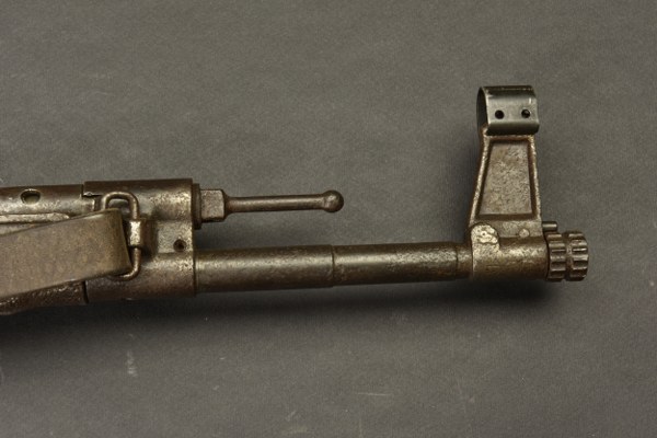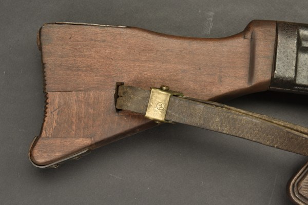 Pistolet mitrailleur MP44. Garnitures en métal fortement oxydées. Plaquettes en bakélite marron. Crosse en bois complète, mais fendue, probablement un modèle postérieur. Fabrication FXO. Numéro 3863. Beau marquage MP44. Chargeur bloqué par la neutralisation, marqué MP 44. Culasse rendue mobile par la neutralisation +. Belle bretelle en cuir. Catégorie C9. Arme neutralisée aux nouvelles normes européenne par le Banc d'épreuve de Saint Etienne. Cette arme doit être déclarée avec Cerfa et certificat médical de moins de 1 mois ou licence de tir tamponnée ou permis de chasse valide (art R312-56). La délivrance de l'arme n'aura lieu qu'après consultation du fichier Finadia. L'inscription de l'acheteur sur ce fichier entrainera automatiquement la nullité de la vente. A noter une certaine usure et patine de la pièce. Etat II+. 2+