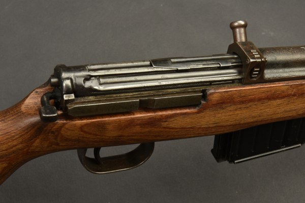 Fusil semi automatique G-43. Bronzage d'origine à 80%. G43 AC 44 Walther. Numéro 5854H. Baguette de nettoyage présente, l'embout est incomplet. Chargeur K43 AYE bloqué par la neutralisation. Culasse rendue mobile par la neutralisation +. Belle crosse en bois complète, disposant d'aigles Waa illisibles. Catégorie C9. Arme neutralisée aux nouvelles normes européenne par le Banc d'épreuve de Saint Etienne. Cette arme doit être déclarée avec Cerfa et certificat médical de moins de 1 mois ou licence de tir tamponnée ou permis de chasse valide (art R312-56). La délivrance de l'arme n'aura lieu qu'après consultation du fichier Finadia. L'inscription de l'acheteur sur ce fichier entrainera automatiquement la nullité de la vente. A noter une certaine usure et patine de la pièce. Etat II+. 2+