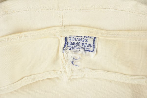 Coiffes blanches pour casquette de l'US Navy. Deux modèles, marqués Naval Uniform Service Under Supervision US Navy et EMB. Tissu légèrement imperméabilisé. A noter une certaine usure et patine des pièces, ainsi que quelques tâches. Etat II+. 2+