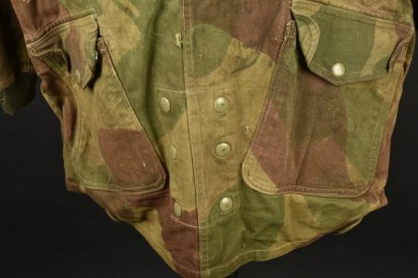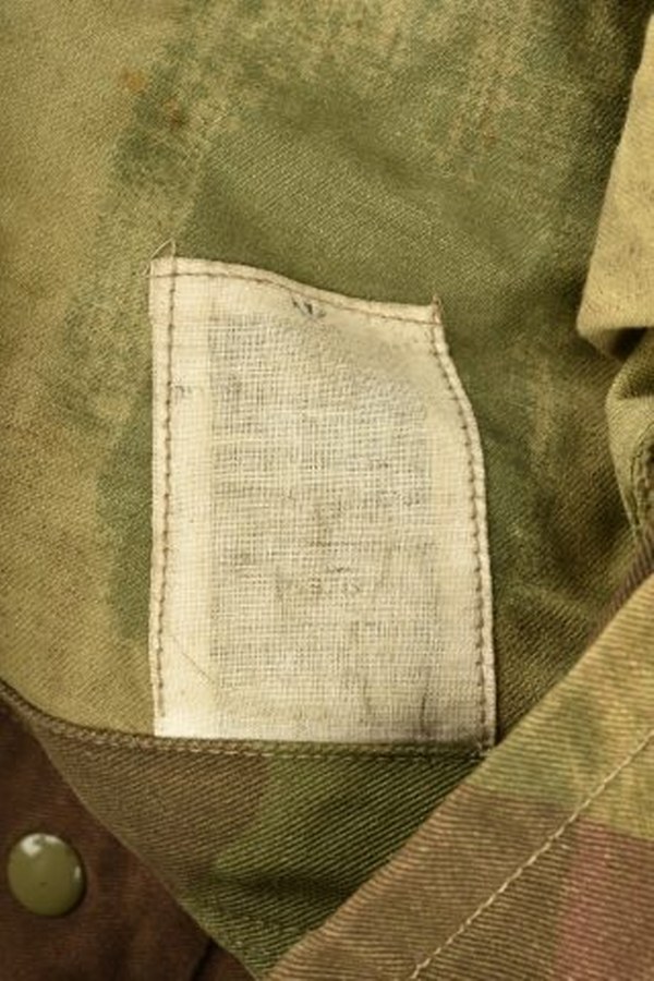Denison Smok. En tissu camouflé. Tous les boutons sont présents. Les boutons pressions sont fonctionnels. Col doublé d'un épais drap marron. Fermeture élcair incomplète, marquée Swift. Queue de castor présente. Etiquette présente mais illisible. Feutrine au bas des manches fortement mitées. Modèle après-guerre. A noter une certaine usure et patine de la pièce, ainsi que des tâches et accrocs. Etat II+. 2+
