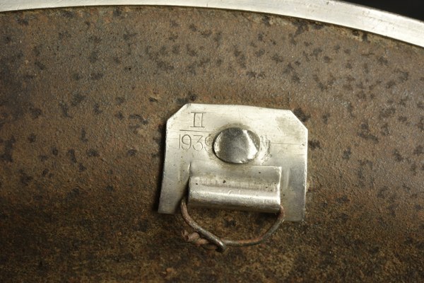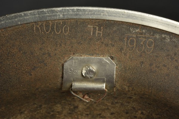 Coque de casque britannique. Coque de casque MK II. En métal. Jonc complet. Fabrication ROCO TH 1939. Les pontets sont également marqués II 1939. Coiffe et jugulaire manquants. Pièce fortement oxydée. Reste de peinture à 20%. A noter une certaine usure et oxydation de la pièce. Etat II-. 2-