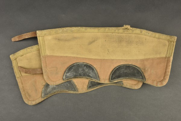 Guêtres britannique. Paire homogène en forte toile web. Les cordons en cuir sont présents. Les marquages sont partiellement illisibles. A noter une certaine usure et patine des pièces. Etat II+. 2+