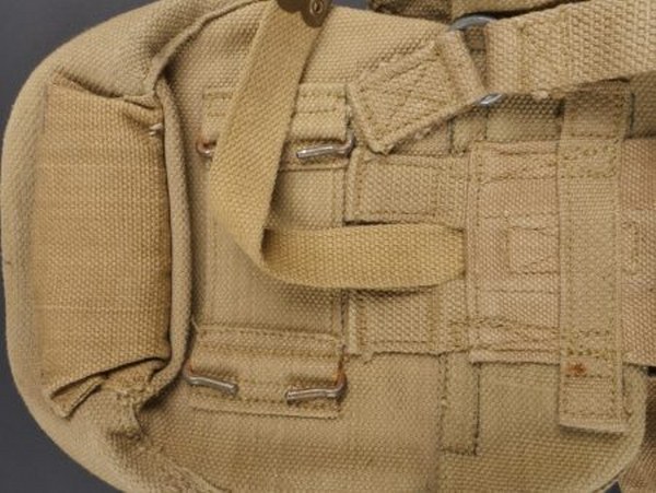Porte chargeur K Gun. Comprenant deux housses en toile web, avec sangles et bretelles. Marquages CP Ltd 1944. Paire homogène. A noter une certaine usure et patine de la pièce, ainsi que quelques tâches. Etat II+. 2+
