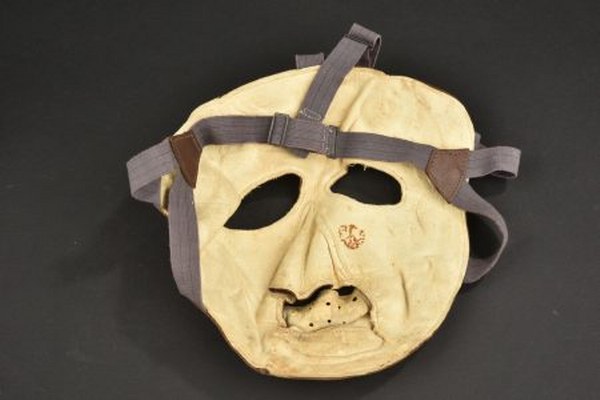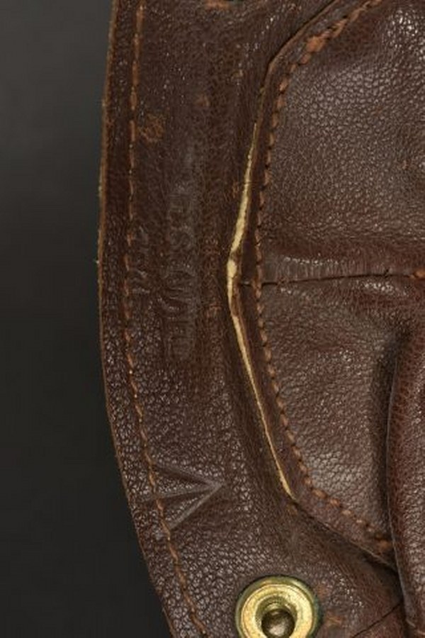 Masque facial britannique. En cuir souple marron, doublé de peau de chamois. Les élastiques sont présents. Les boutons pressions sont fonctionnels. Reste de marquages illisibles. A noter une certaine usure et patine de la pièce. Etat II+. 2+
