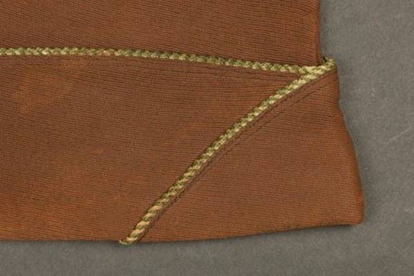 Calots US. Comprenant un calot en drap marron, liseré vert et blanc. Intérieur doublé en satinette, bandeau de sudation en cuir. Un calot en drap kaki. Bandeau de sudation en toile, reste de Laundry number illisible. Etiquette du QM Depot. Taille 7 3/8. A noter une certaine usure et patine des pièces. Etat II+. 2+