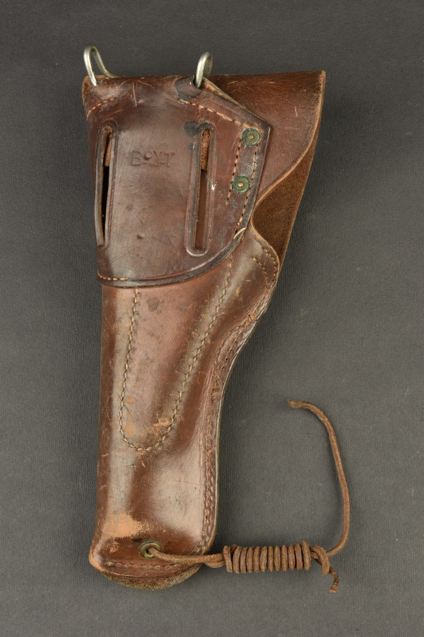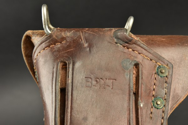 Etui de Colt 1911 fabricant BOYT. Bel étui en cuir, bien marqué US et du fabricant BOYT daté 1942. Avec sa sangle d'origine et son crochet de ceinturon. Belle patine. II+