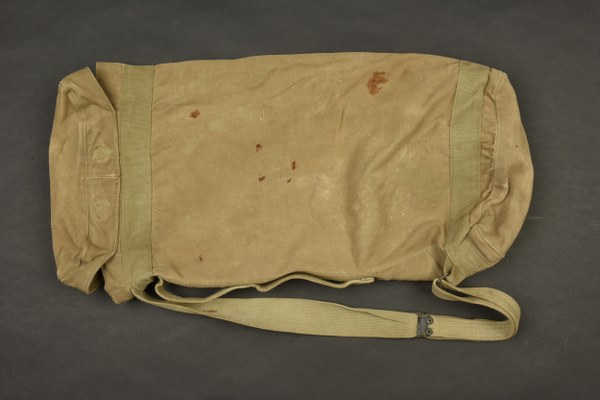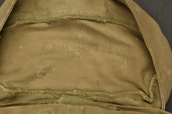 Sacoche pour Bazooka US. En forte toile OD. Les boutons sont fonctionnels. La sangle de transport est présente. Marquages au pochoir 1st Squad 3RD Plat. A noter une certaine usure et patine de la pièce, ainsi que des tâches et accrocs. Etat II+. 2+