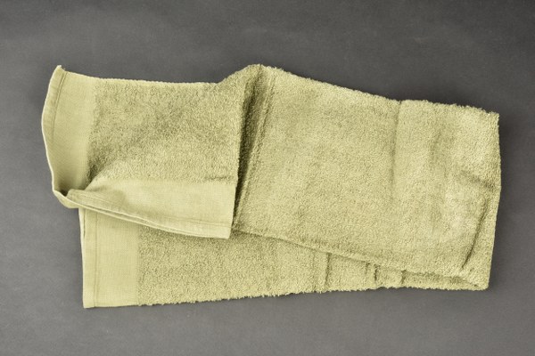 Serviette de toilette US. En tissu coton éponge kaki. Sans marquages visibles. A noter une certaine usure et patine de la pièce, ainsi que quelques tâches. Etat II+. 2+