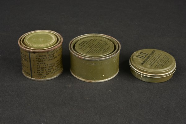 Ensemble de boites US. Comprenant une boite complète en métal, bien marquée Poison Wood Alcohol, fabrication Hotel Research Laboratories New York. Une boite en métal, complète, marquée Poison Wood Alcohol, fabrication Hotel Research Laboratories New York. Une boite en métal, vide, marquée US Cream Sunburn Preventive, fabrication RM Hollingshead Corp Camden. A noter une certaine usure et patine des pièces. Etat II+. 2+