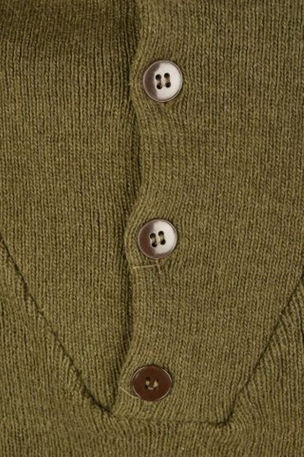 Pull US. En épais lainage kaki. Quatre boutons présent, fermant le col. Sans marquages visibles. A noter une légère usure et patine de la pièce. Petite taille. Etat I-. 1-