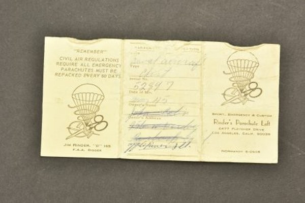 Housse de parachute ventral T-7. Housse en forte toile OD, Vide. Poignée de transport en toile complète. Les élastiques sont présents mais postérieurs. Les crochets de fixation au harnais sont complets et fonctionnels. Livret présent, marquages Rinder's Parachute Loft Los Angeles Normandy +-0905. Nombreux sauts dans les années 60. Les boutons pressions sont fonctionnels. Indication nominative Colins. Marquages Type T-7 parachute Standart Parachute Corps San Diego California. 24 FT Part NO 44-J107743, date of MFG Aug 1945. A noter une certaine usure et patine de la pièce, ainsi que des tâches. Etat II+. 2+