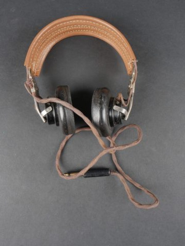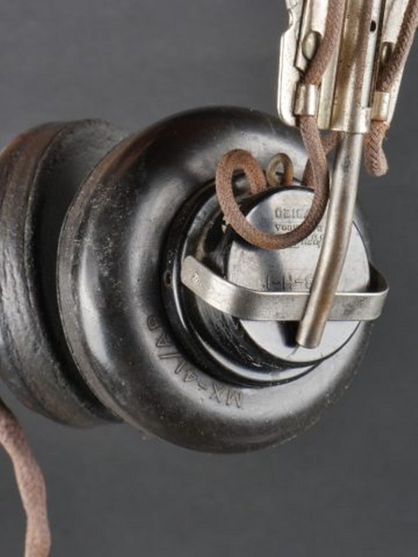 Casque radio ANH-15. Armature en métal. Recouverte d'un épais cuir marron. Bonnettes en caoutchouc. Câble et prise présent. A noter une certaine usure et patine de la pièce. Etat II+. 2+