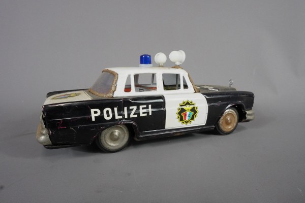 1/24ème Voiture Mercedes Polizei mécanique à friction en tôle lithographiée.